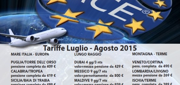 Il Tour Operator ACE, in convenzione con il sindacato CONSAP, riserva uno speciale estate last – Ace 2015, con tariffe a prezzi scontati per il periodo luglio – agosto. Tra le localita’ Mare Italia e Europa, destinazioni come Puglia, Calabria, Sicilia, Sardegna, Croazia, Grecia, Spagna, Dubai, Messico, Maldive, Thailandia, Cina, Usa, Giappone, Trentino Alto Adige, Cortina, Livigno, Ischia Terme. I prezzi in locandina sono a persona a settimana, validi per 2 persone, tranne tratte a lungo raggio. Per info: 0549.970047 – 06.4825431 – info@acetour.it