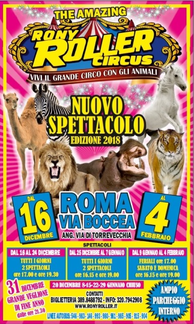 Rinnovato il rapporto di collaborazione con il prestigioso Circo Rony Roller, il grande Circo con gli animali che fino al 4 febbraio 2018 avrà come sede Roma, Via Boccea, angolo Via di Torrevecchia.