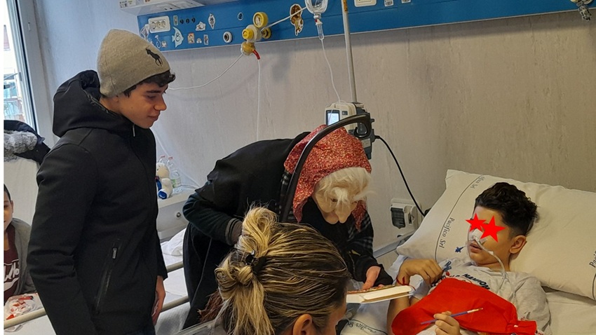 Befana San Camillo/Forlanini – Sindacato Polizia CONSAP – ROMA. Il giovane attore Federico IELAPI consegna le calze insieme alla delegazione dei poliziotti della CONSAP