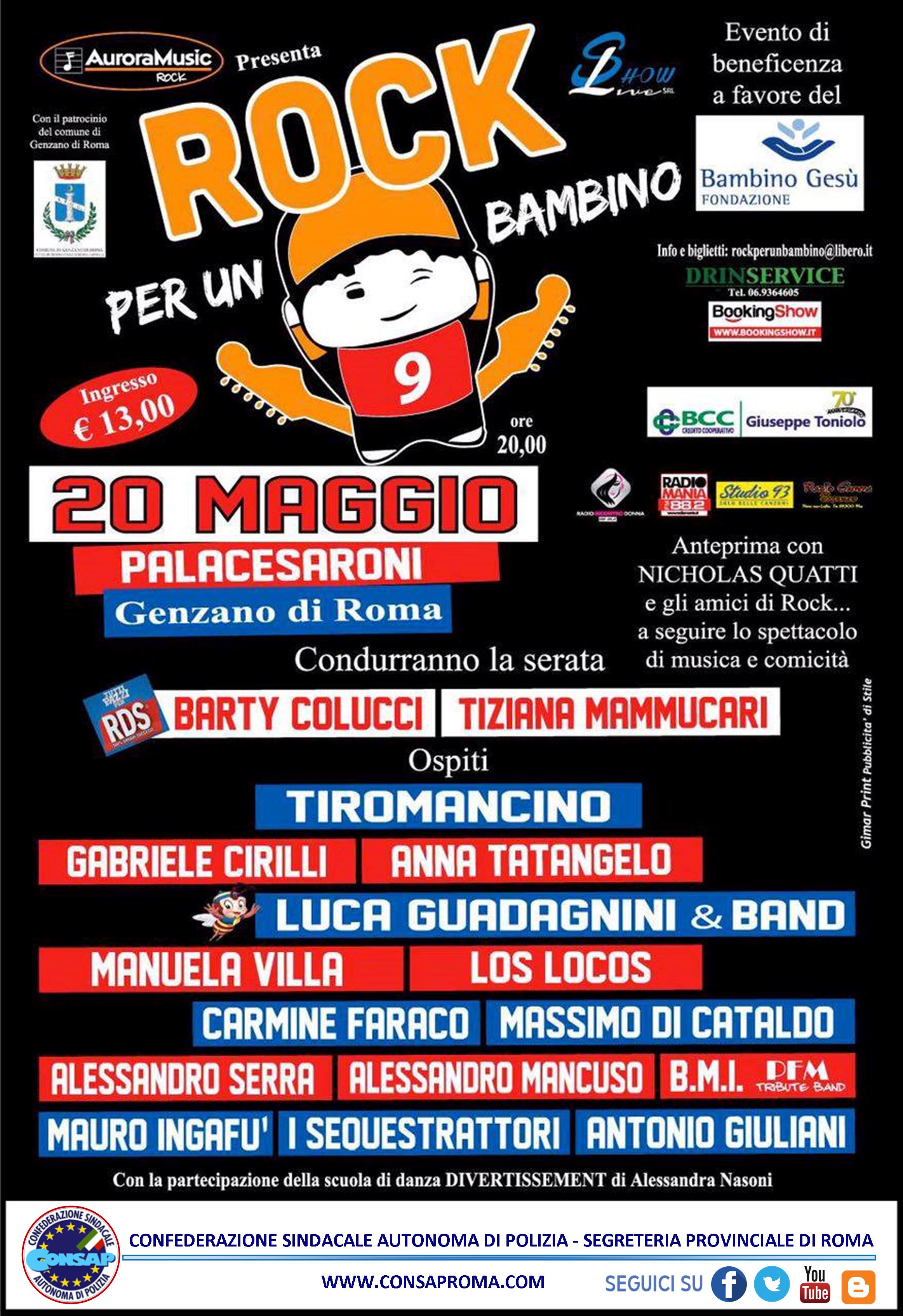 Locandina Rock per un Bambino 9^ edizione del 20 Maggio 2017