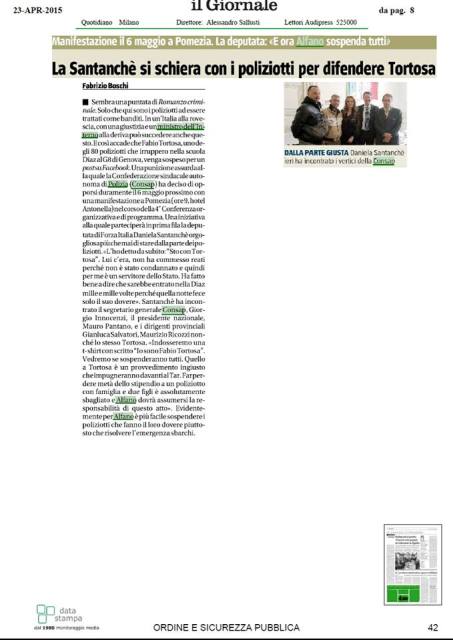 Il Giornale – Fabio Tortosa Posted on 2 Maggio 2015 by consapromapolizia Lascia un commento Il Giornale – Fabio Tortosa La Santanchè si schiera con i poliziotti per difendere Tortosa – Il Giornale 23 Aprile 2015 Condividi: Fai clic qui per stampare (Si apre in una nuova finestra) Stampa Fai clic per inviare un link a un amico via e-mail (Si apre in una nuova finestra) E-mail Tweet Fai clic per condividere su WhatsApp (Si apre in una nuova finestra) WhatsApp Fai clic per condividere su Telegram (Si apre in una nuova finestra) Telegram Fai clic per condividere su Instagram (Si apre in una nuova finestra) Instagram Mi piace Caricamento...